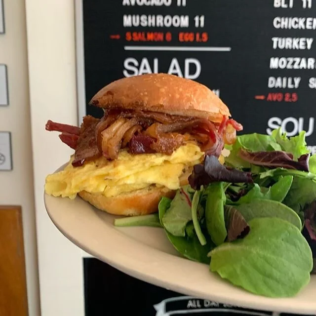 La Colombe beans & our mother's pastries from Arlene's Bakery. We serve a variety of sandwiches, salads,